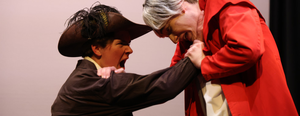 This play follows D’artagnan (played by Nate Cook) as he works toward his goal of being a Musketeer, alongside his younger sister Sabine (played by Karolina Guzman Smyl.) When he travels to Paris all he has to his name is fifteen crowns, a letter of recommendation to a Mr Treville, captain of the musketeers, his father’s old hat, and his nagging sister. His plans hit a slight snag when he runs into the one eyed man, Rochefort played by Kylie Flanders, who steals his letter with a little help from a certain individual. The Cardinal’s niece M’lady performed by Molly Vince. Without his letter becoming a musketeer may be a little more difficult than he thought. He still has his trusty charm to fall back on, but how far will that get him.
